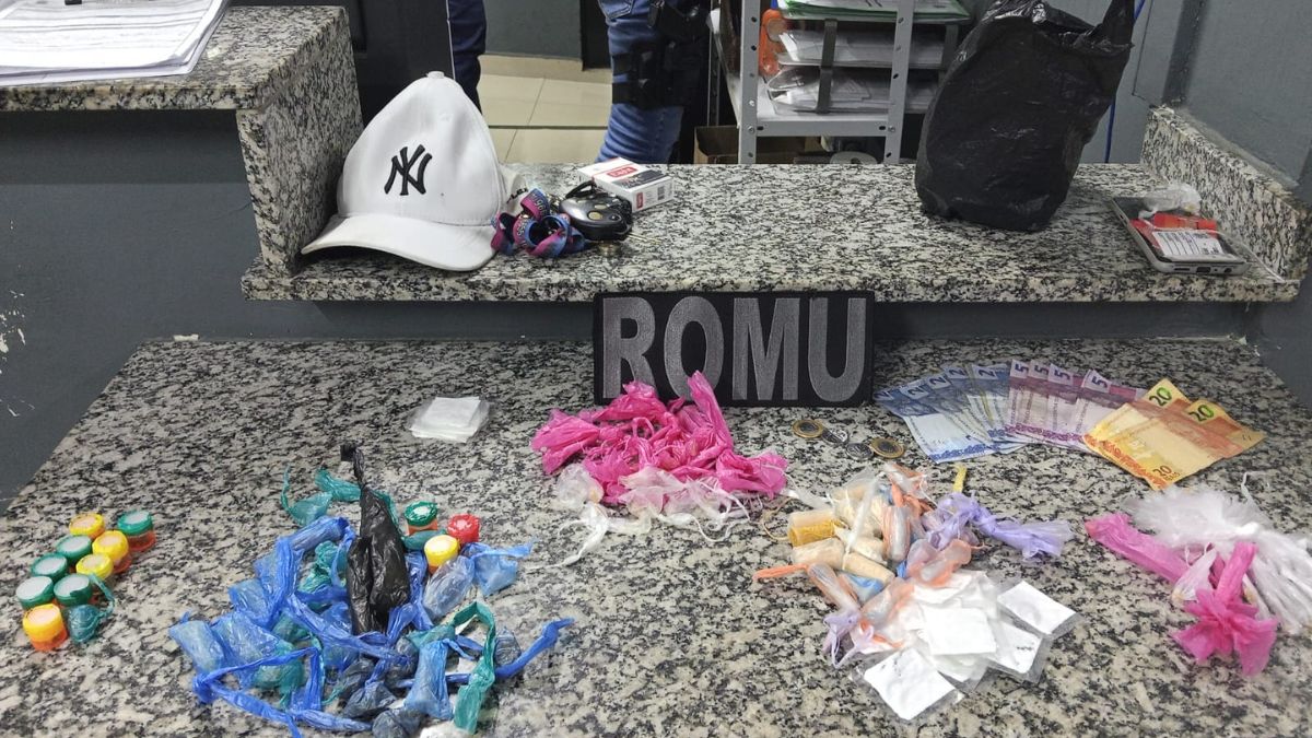 Ao tentar empreender fuga, porém foram alcançados em seguida. Foi encontrado na posse de um dos indivíduos dez invólucros de cocaína e vinte e cinco pedras de crack e uma sacola contendo 36 invólucros de maconha, 41 invólucros de cocaína e 22 invólucros de crack. Já com o outro homem abordado, foram encontradas duas pedras de crack, adquiridas naquele exato momento.
