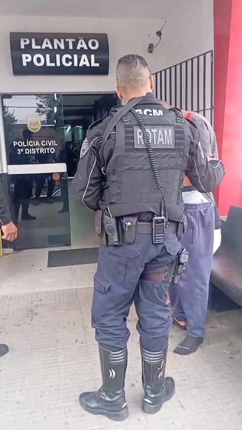 O indivíduo foi conduzido à delegacia pelos guardas, ficando à disposição da Justiça.