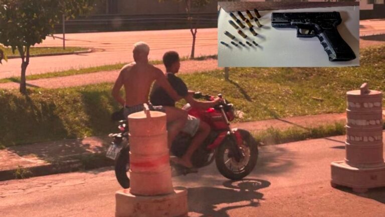 Durante a busca pessoal, foi localizado com o menor de idade um simulacro de arma de fogo. Em diligência realizada na residência do menor, os agentes encontraram diversas munições de diferentes calibres, configurando também o crime de posse irregular de arma de fogo e corrupção de menores.