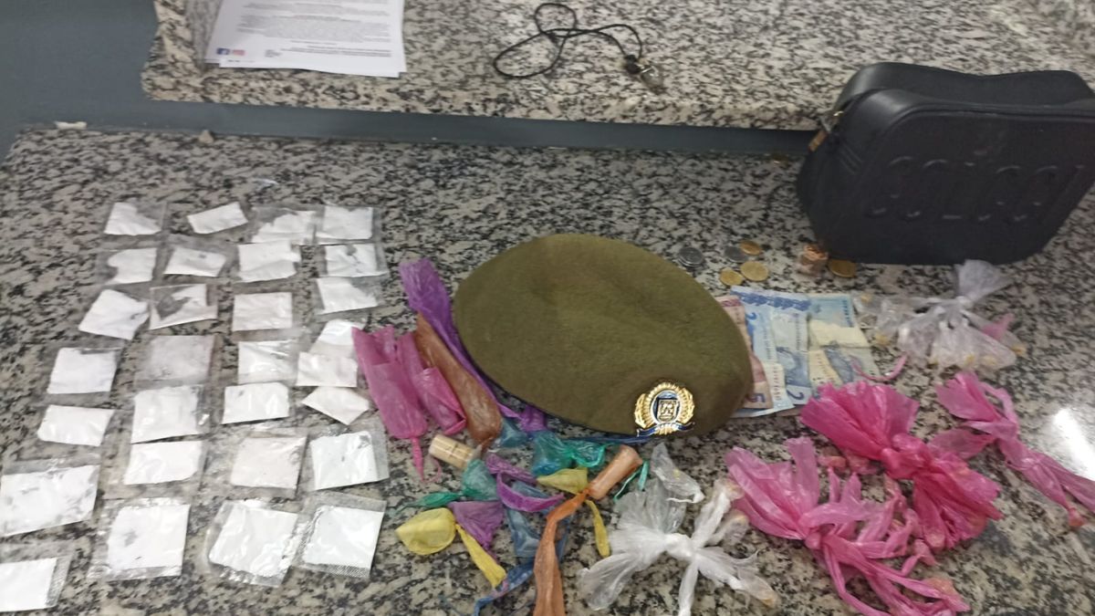 Os guardas abordaram a mulher, com a qual foram encontrados entorpecentes: 39 invólucros de cocaína; 42 pedras crack, 17 invólucros de maconha e R$ 13 reais em espécie.
