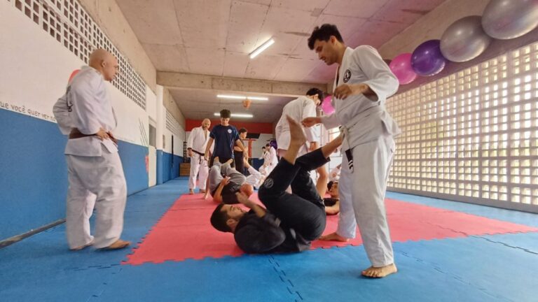 Para quem for iniciante, não precisa se preocupar com kimono logo no início. Basta ir de roupa esportiva e já pode participar das aulas.