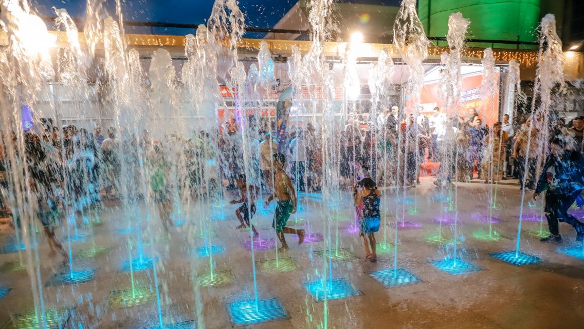 FONTE INTERATIVA – Com a previsão de altas temperaturas no fim de dezembro e ao longo de janeiro, a Fonte Interativa recém-inaugurada no Paço Municipal tem se consolidado como ponto de encontro para quem busca refresco e diversão gratuita para todas as idades. O espaço conta com 164 bicos de jatos d’água e 328 projetores subaquáticos em LED. À noite, o atrativo ganha ainda mais charme com um espetáculo de cores e luzes.