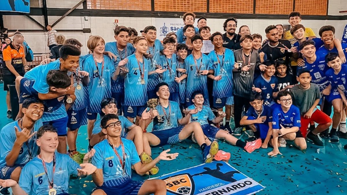 A equipe masculina de handebol mirim de São Bernardo faturou mais um título. Desta vez foi na disputa do Campeonato Paulista da categoria. Na tarde deste sábado (29/11), o time de São Bernardo/Ábaco/Unip superou São José dos Campos, pelo placar de 27 a 18, em partida decisiva no Complexo do Baetão – o torneio compreende atletas Sub-12.